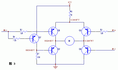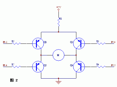 以下所述电路用于3V供电的微型直流电机的驱动,这种电机有两根引线,更换两根引线的极性,电机换向。该驱动电路要求能进行正反转和停止控制。