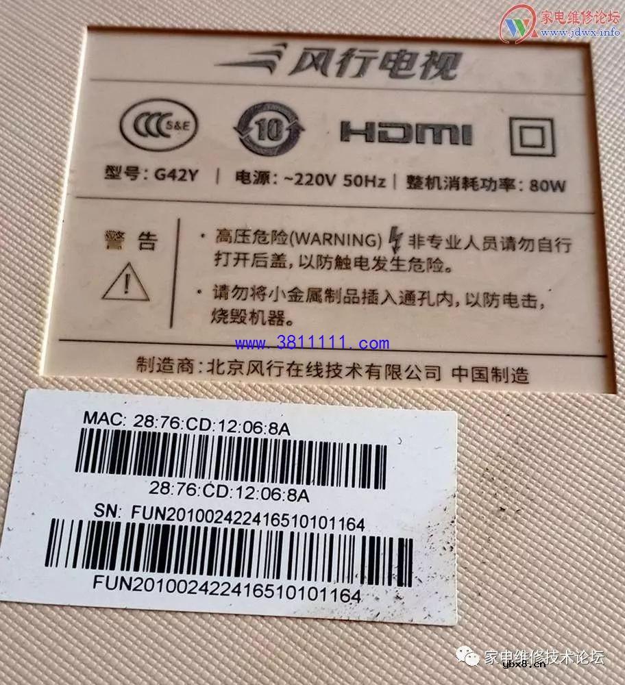 今接修一台风行电视G42Y液晶电视,上电开机无反应情况。面板指示灯也没亮!拆盖,见里面是一块三合一板:MSA6383-2C01-01。仔细观察,见电源处已有一处明显烧伤的痕迹! 测电源保险已烧断,再测电源整流二极管,四个就击穿了二个