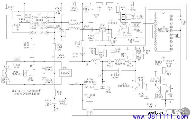 九阳JYC-21HS87电磁炉电路简析与故障检修
