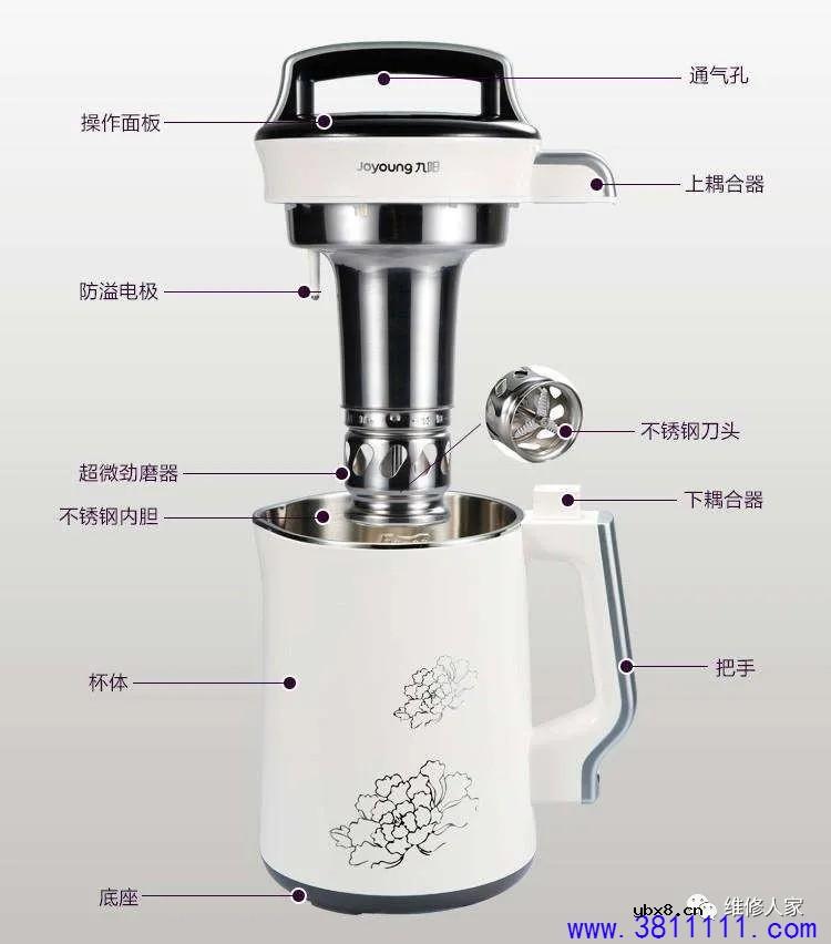一、豆浆机电路简介豆浆机一般采用微电脑控制,具有自动控温、加热保温、低水位防干烧、防溢、语音提示和自动停机等功能。主要由稳压电源电路、微电脑控制电路、温度检测电路、电动机和加热管电路、语音电路等组成