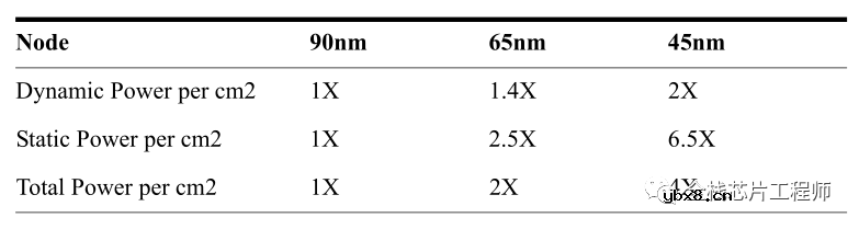 低功耗设计的重要性,从下图可窥一斑,随着工艺节点的推进演化,45nm工艺的动态功耗、静态功耗相比90nm工艺分别增加到了2倍、6.5倍。随着工艺节点演进到14nm、7nm等先进节点,Leakage Power的占比越来越高,Power