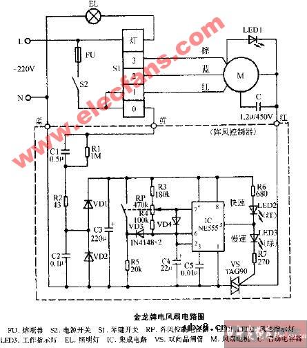 金龙牌电风扇电路图