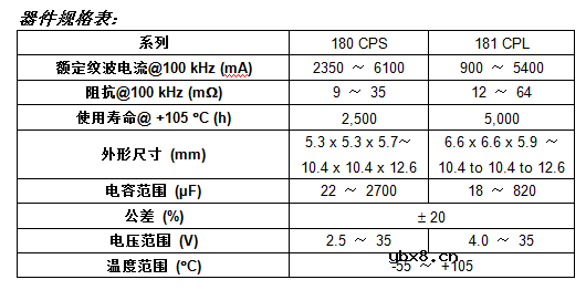 宾夕法尼亚、MALVERN — 2016 年 5 月31 日 — 日前,Vishay Intertechnology, Inc.(NYSE 股市代号:VSH)宣布,推出采用导电技术的两个新系列铝聚合物电容器---180 CPS和181 CPL。Vishay BCcomponents 180