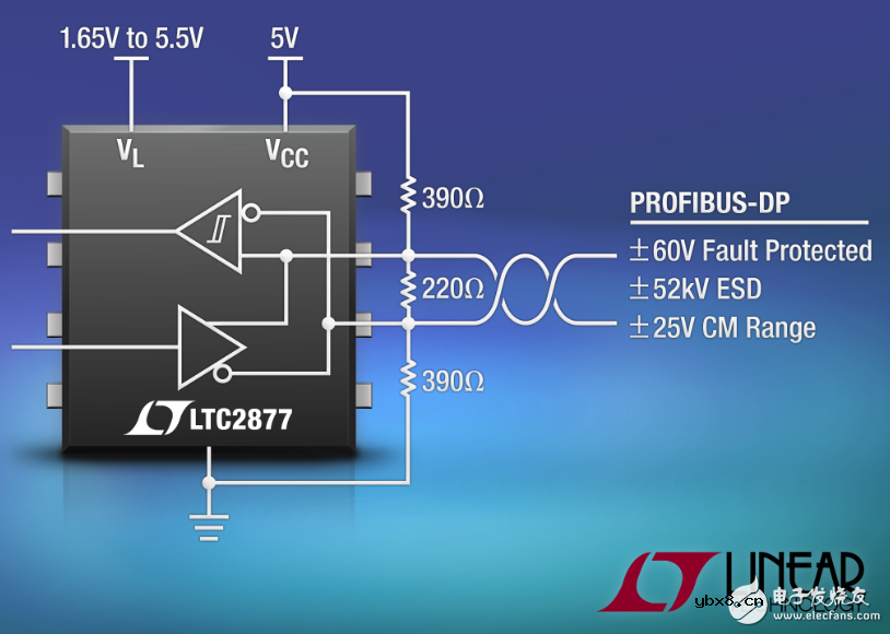 加利福尼亚州米尔皮塔斯 (MILPITAS, CA) – 2016 年 4 月 11 日 – 凌力尔特公司 (Linear Technology Corporation) 推出异常坚固和可耐受高电压的 RS485 收发器 LTC2876 和 LTC2877,它们面向 PROFIBUS
